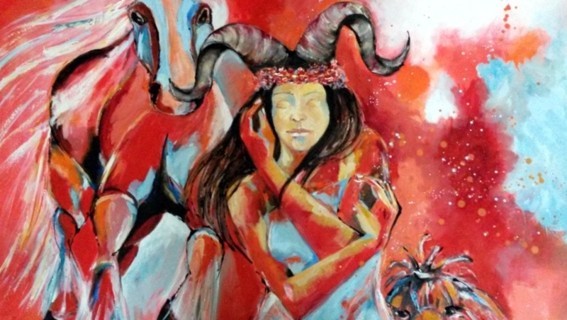 steenbokvrouw in rood
