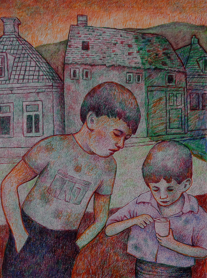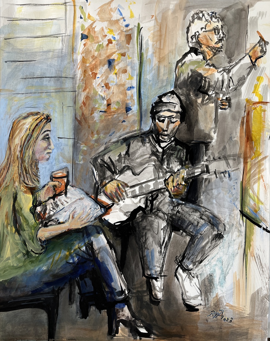 Zangeres en “ Pierrot”. Op oefensessie gebaseerde fantasie