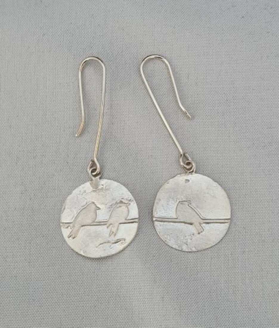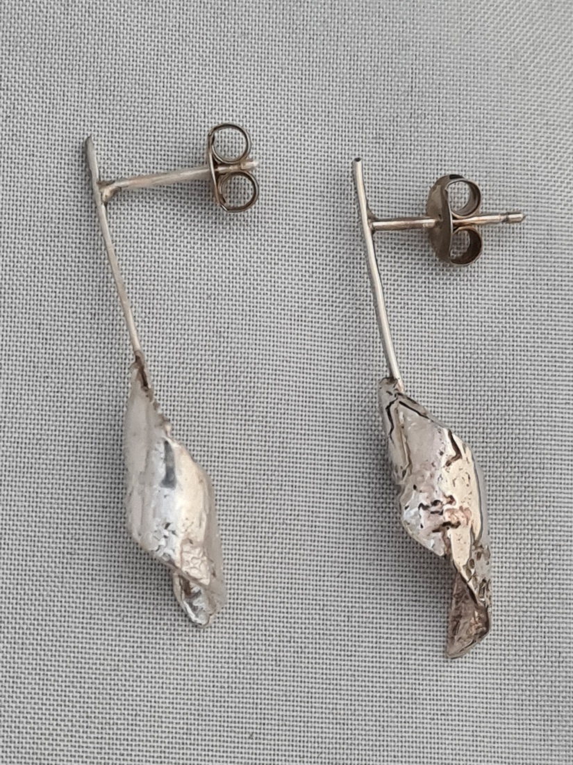 zilveren oorhangers met gedraaid gehamerd plaatje
