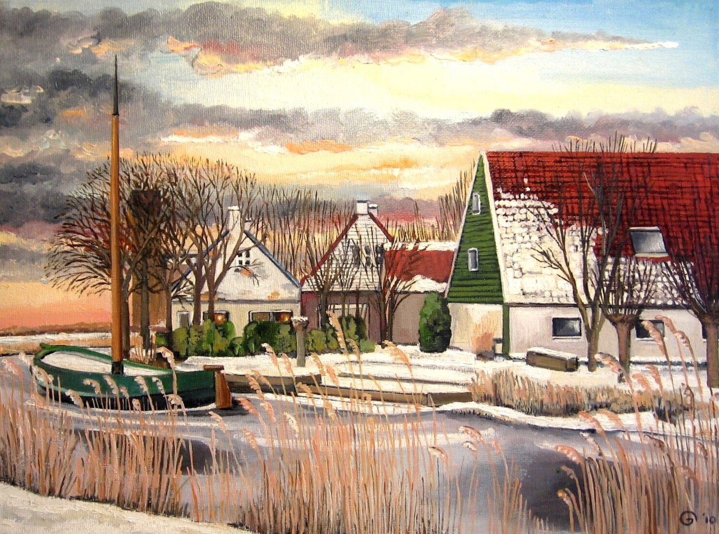 Hichtum schilderij Hollands wintergezicht, Winter Friesland Fryslan bolsward
