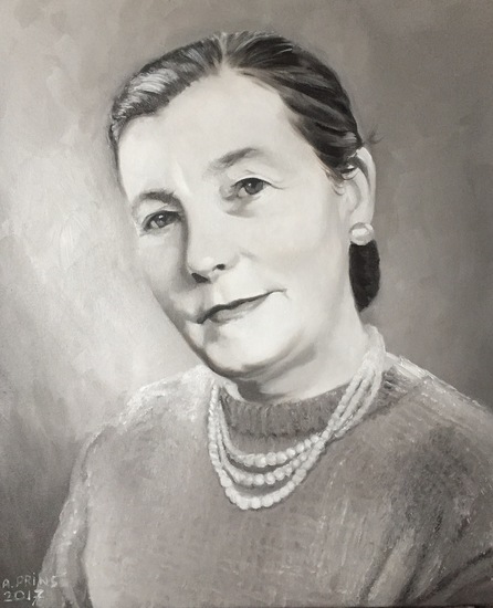 Portret vrouw olieverf goudreliefverf in zwarte lijst