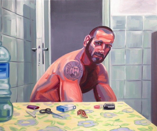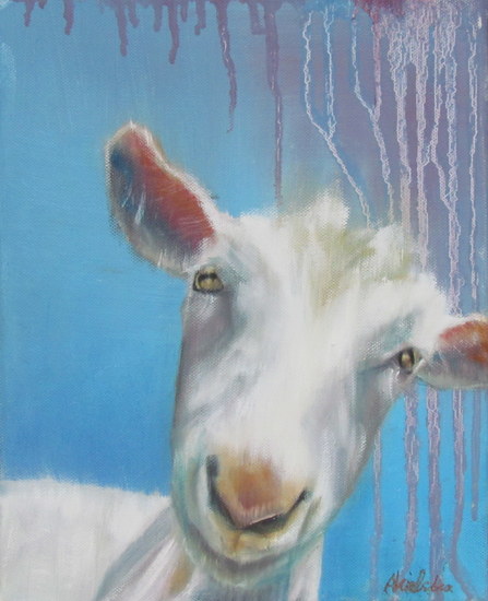 zelfportret met kat en vogel
