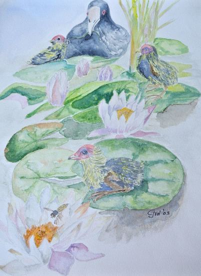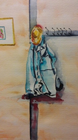 Blauwe Hortensia’s in Vaas, aquarel van bloemen in vaas