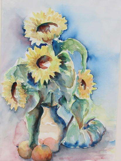 Zonnebloemen met pompoen