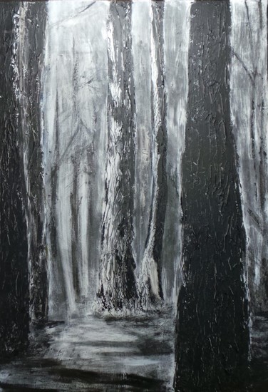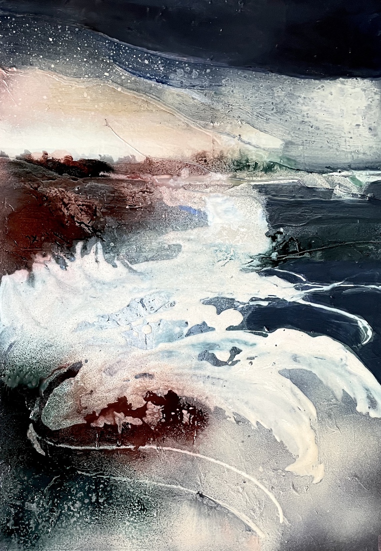 6 verschillende collage--schilderijtjes 10x10 cm. € 25 per stuk