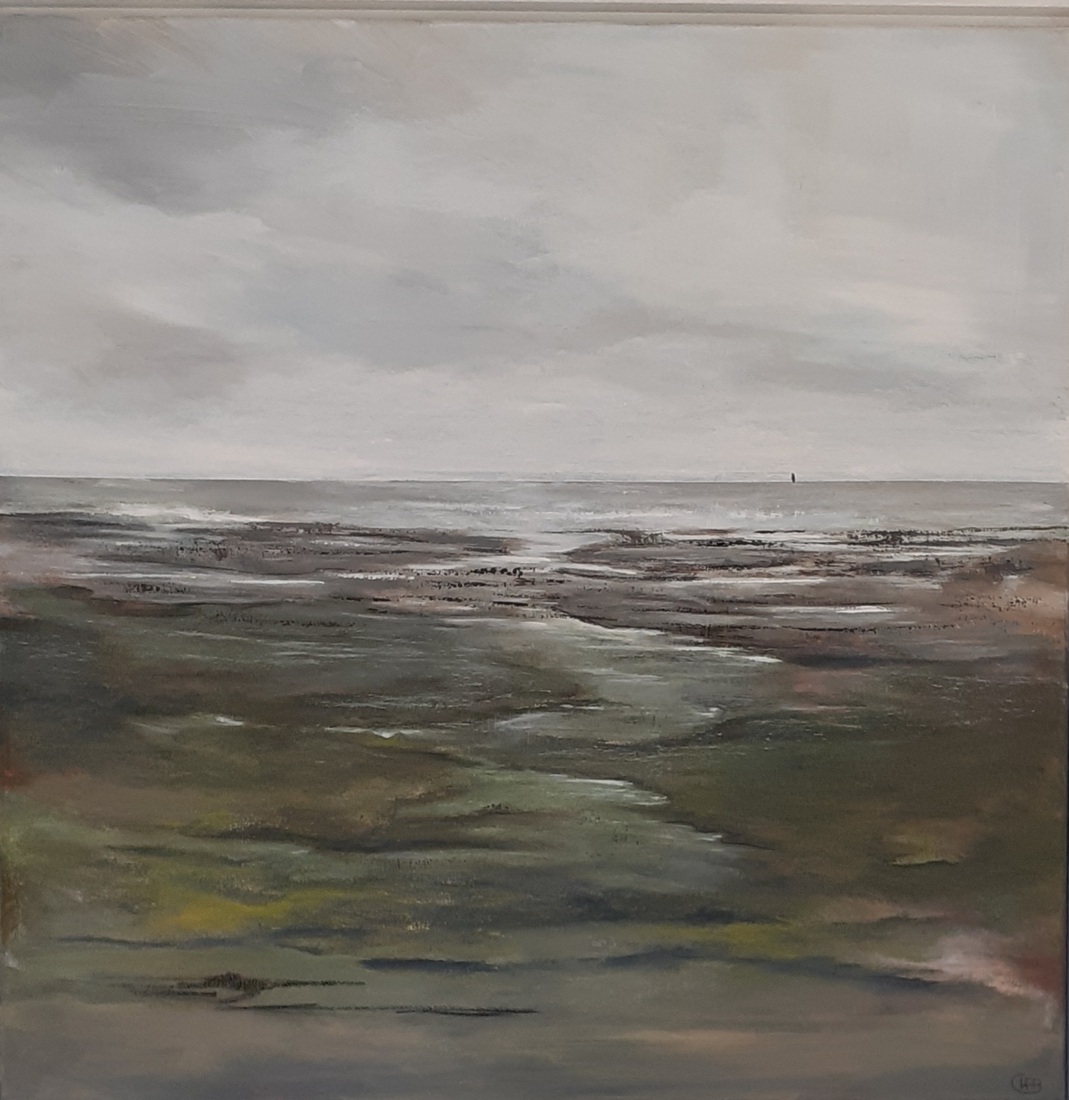 Kwelderkrûd; sels mei in reade dekmantel is it modderjen sinneklear / Zeekraal; zelfs met een rode dekmantel is het modderen zonneklaar