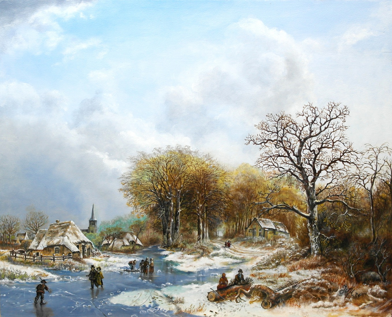 SNEEUWLANDSCHAP MET HARLEKIJN EN HOND