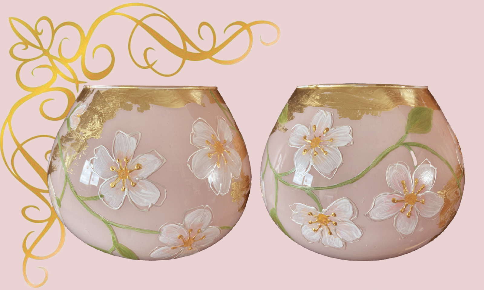 Vaasje, waxinelichtjes of 2 objectjes van glas. — €80,00