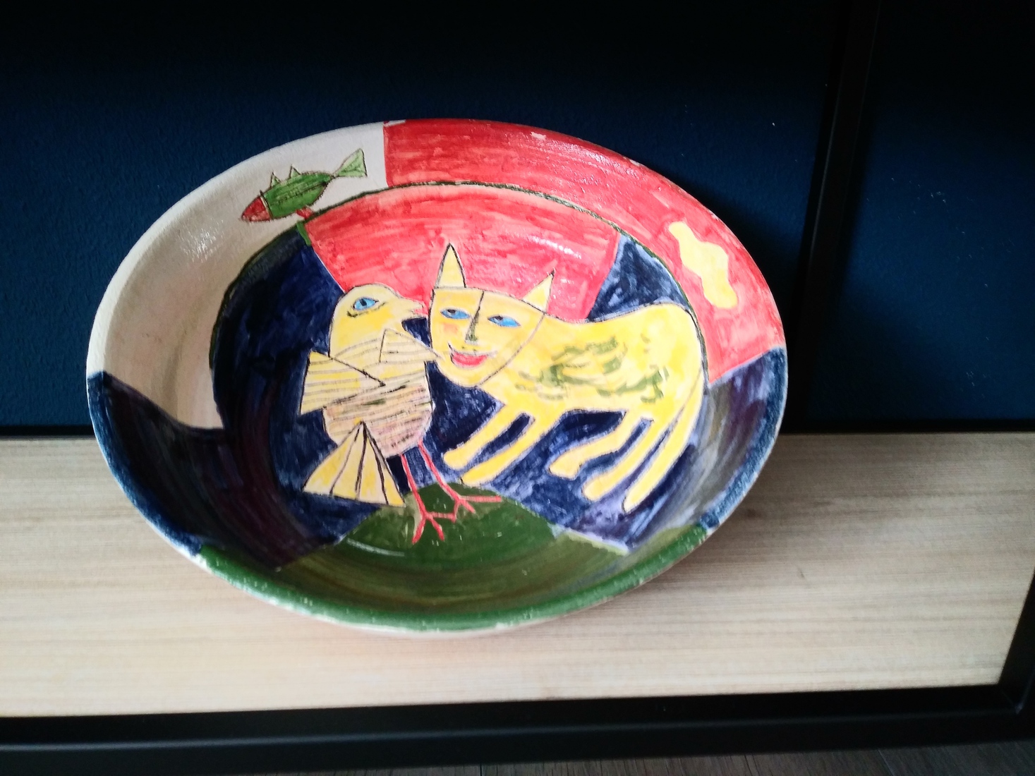 Koningsblauw pate de verre schaaltje met fused glas details — €67,00