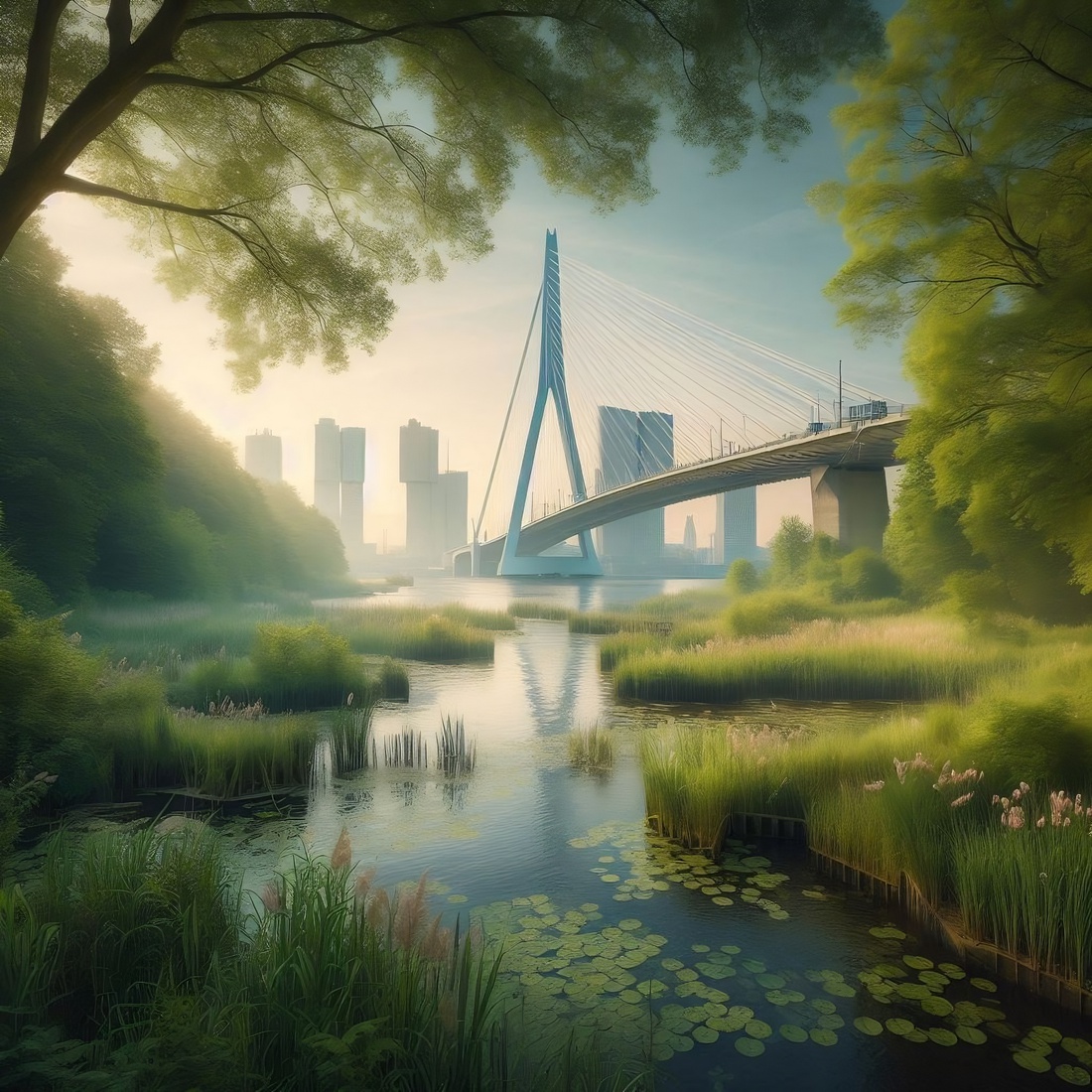 R017 - Rotterdam Erasmus bridge in green landscape — €59,00