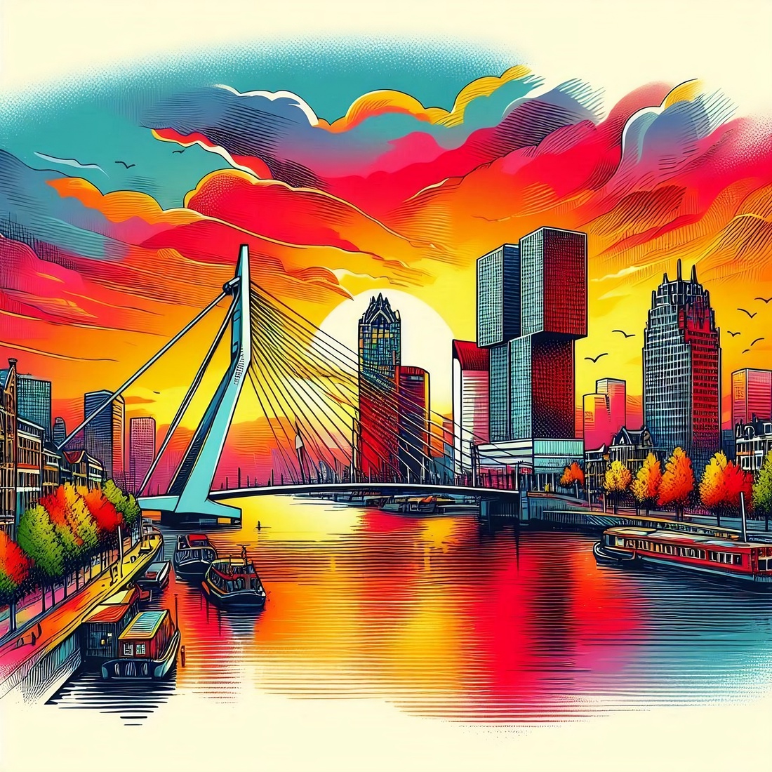 R016 - Rotterdam Erasmus bridge at sunrise — €59,00