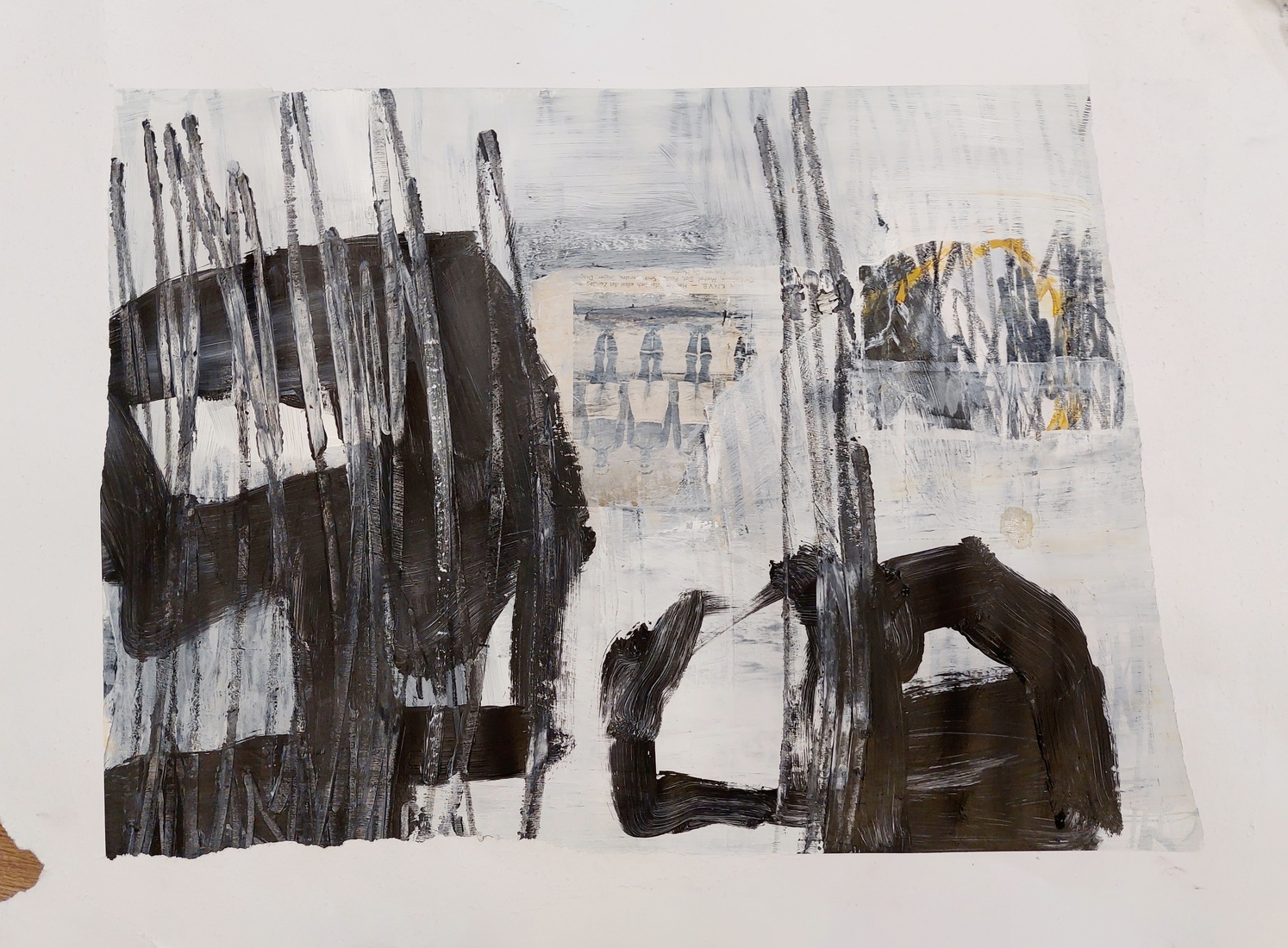 Mixed media op houten plankje 03. — €25,00