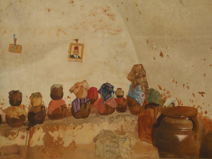MARQUA381 Bloemachtigen fantasie 50x170 cm. in goud, incl houten zwart/gouden baklijst