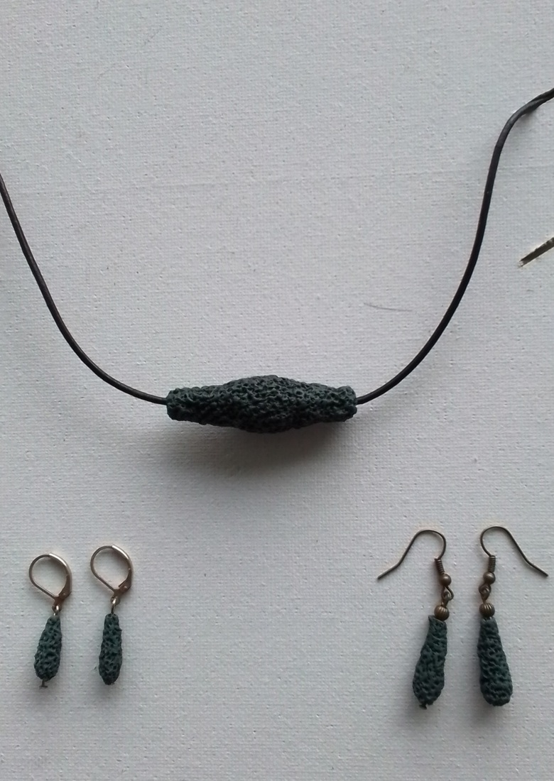 Halssieraad met handgevormde kraal en lederen koord nr 03. — €21,00