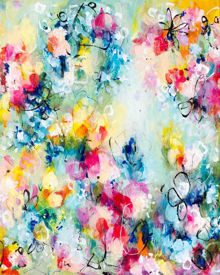 MARQUA381 Bloemachtigen fantasie 50x170 cm. in goud, incl houten zwart/gouden baklijst