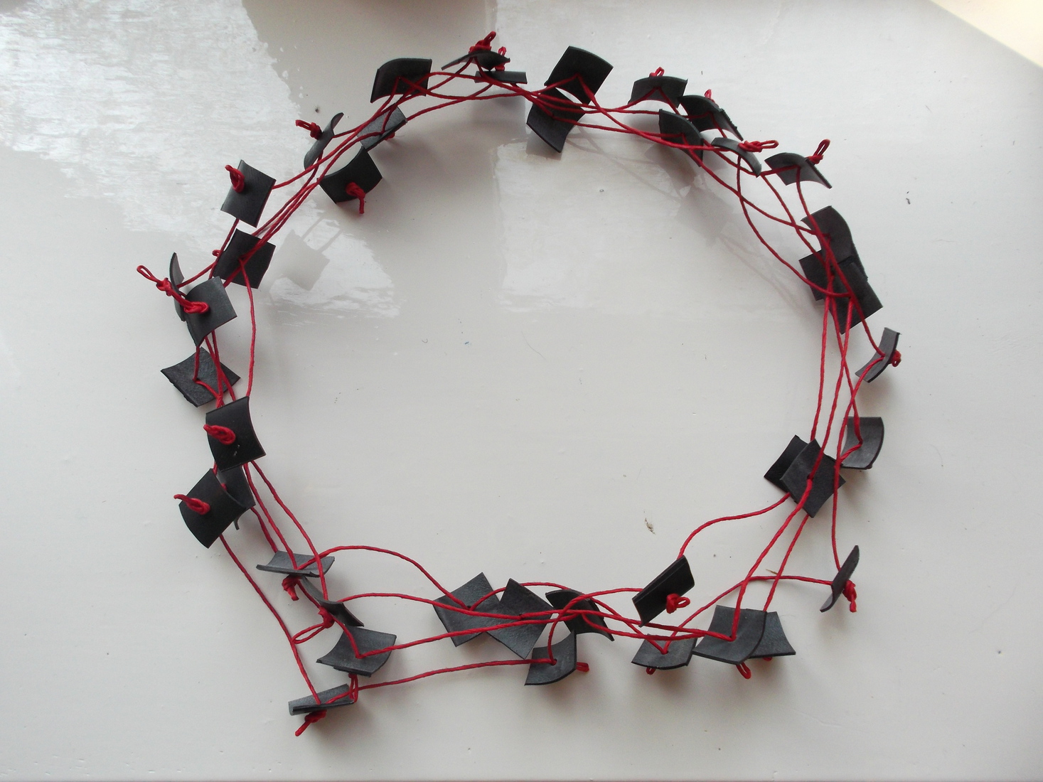Halssieraad met handgevormde kraal en lederen koord nr 03. — €21,00