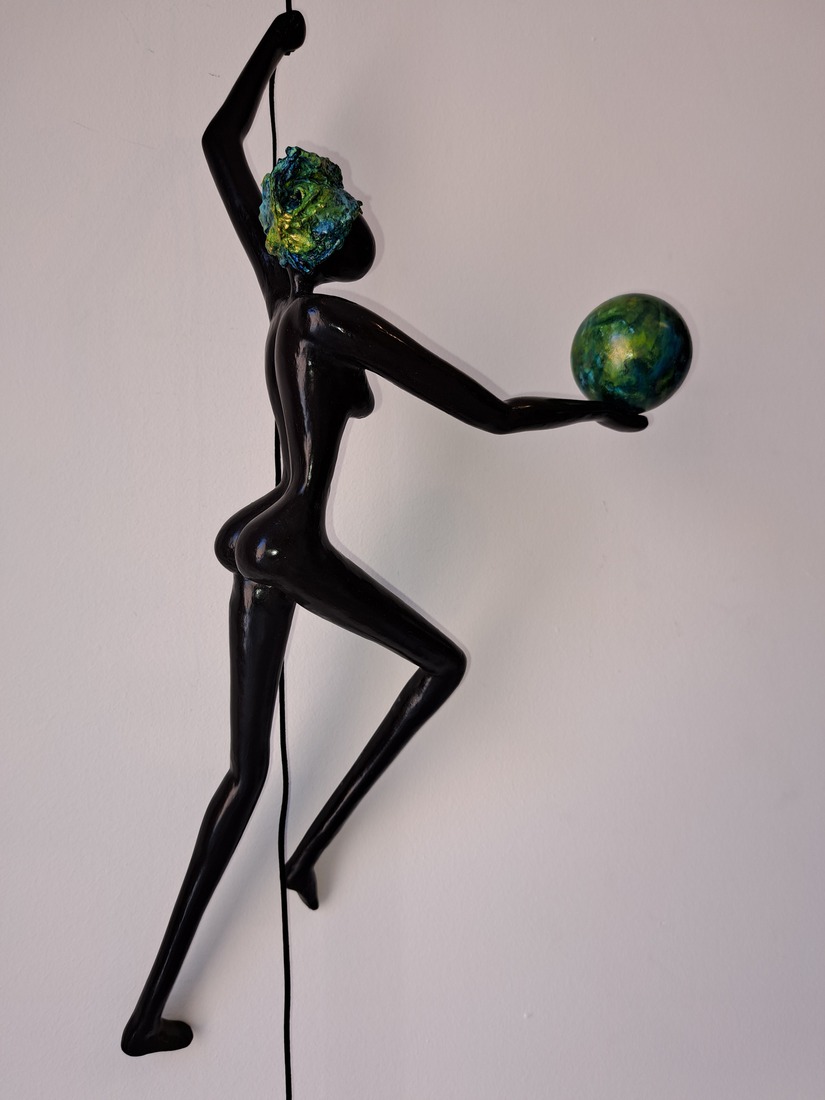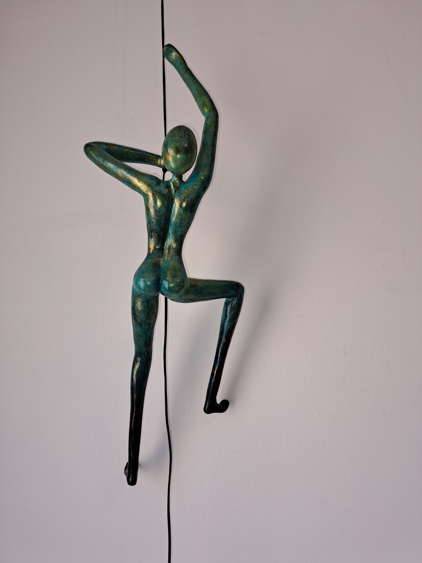 Geveltoeriste met rode gloed aan zwart klimtouw — €375,00