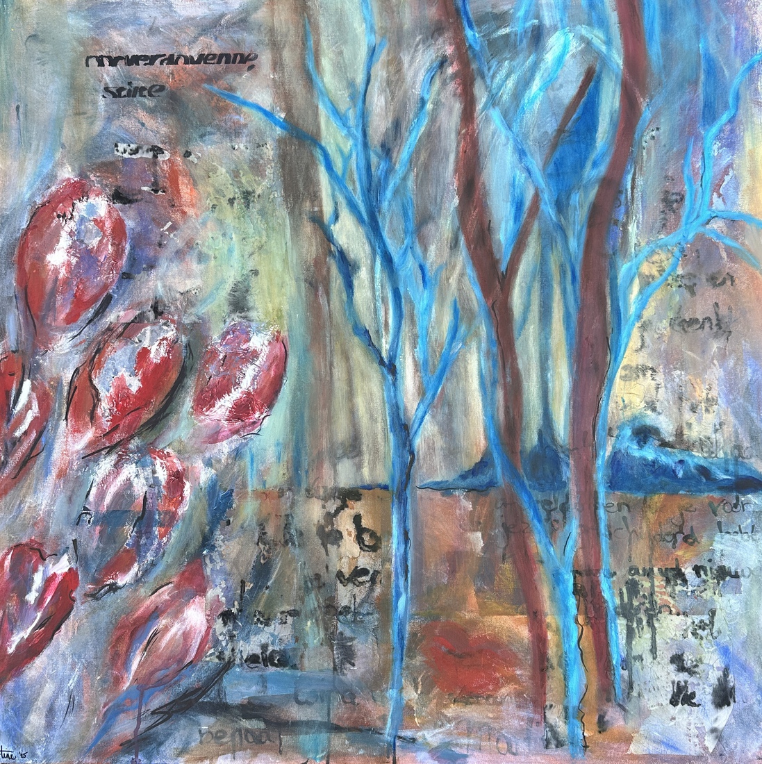 Bomen met paarse achtergrond — €95,00