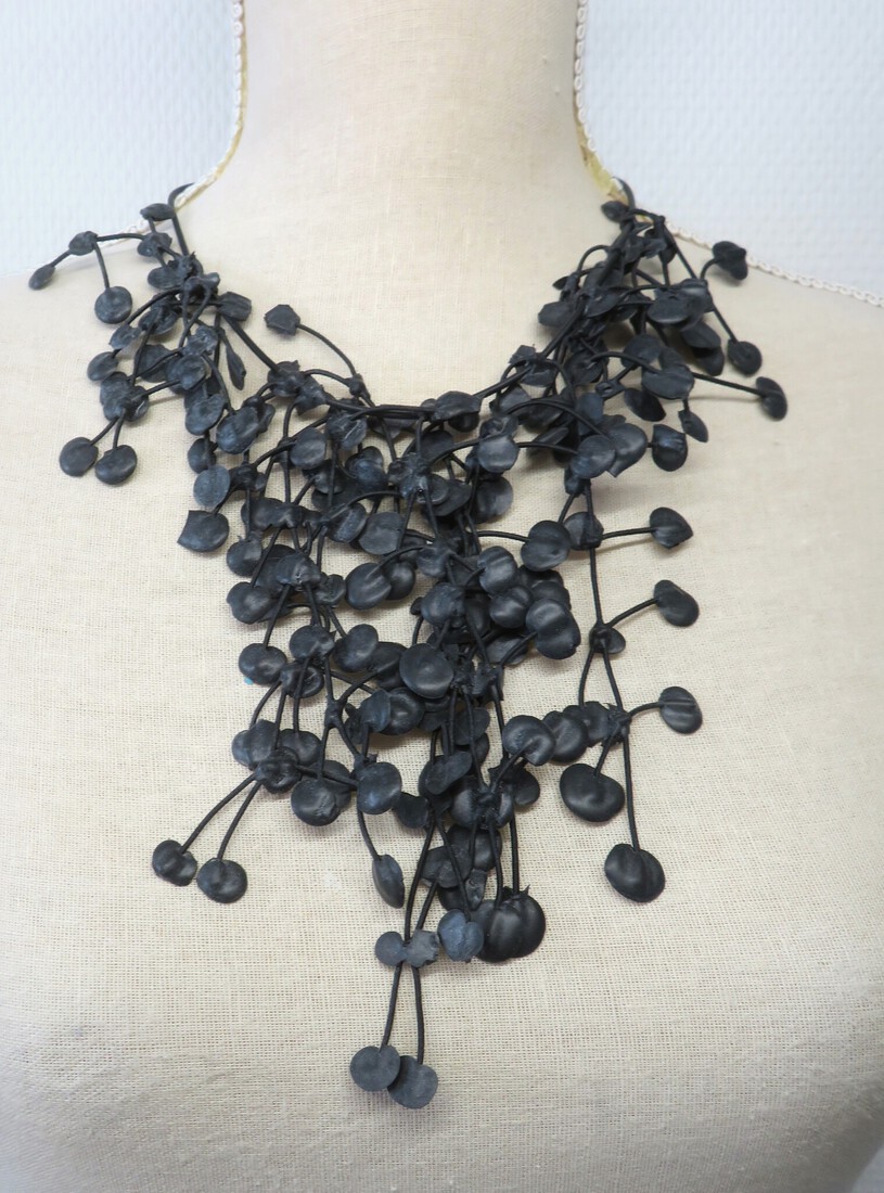 Enkele halsketting, gehaakt van dun koper- en zilverdraad — €80,00