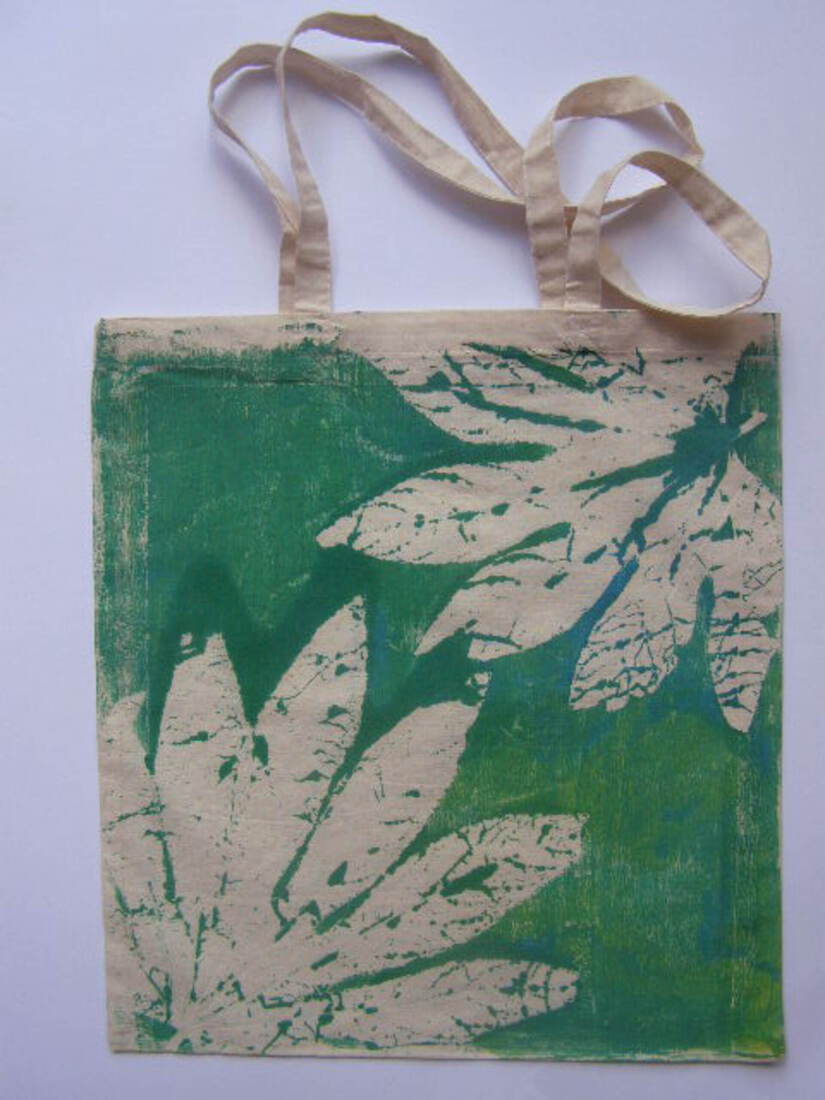 Katoenentas Monoprint - Groen blad — €15,00