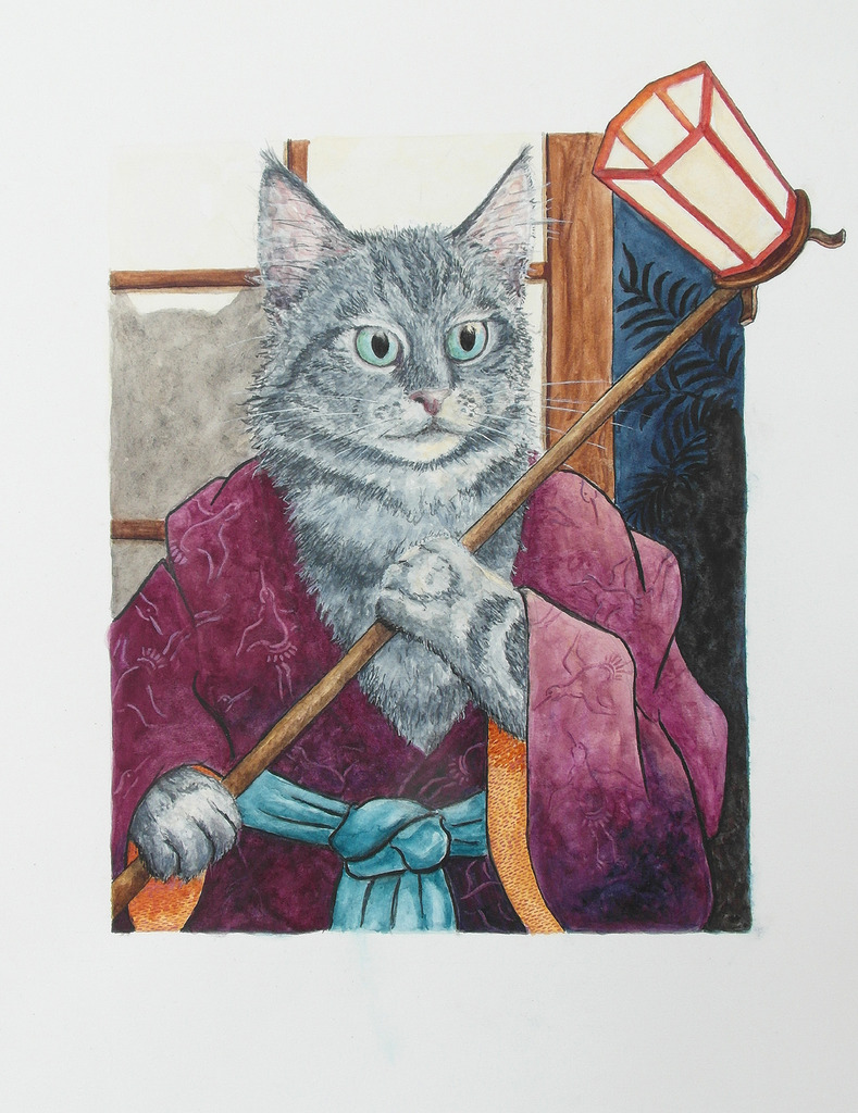Arie de Jong (Alkmaar, 1961) verbindt in haar werk haar passie voor katten met haar interesse voor de Japanse cultuur en (krijgs)geschiedenis.