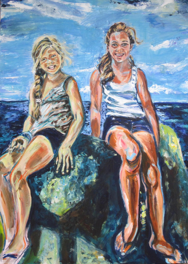portret ,zee , dochters , zomer ,frankrijk ,bretagne