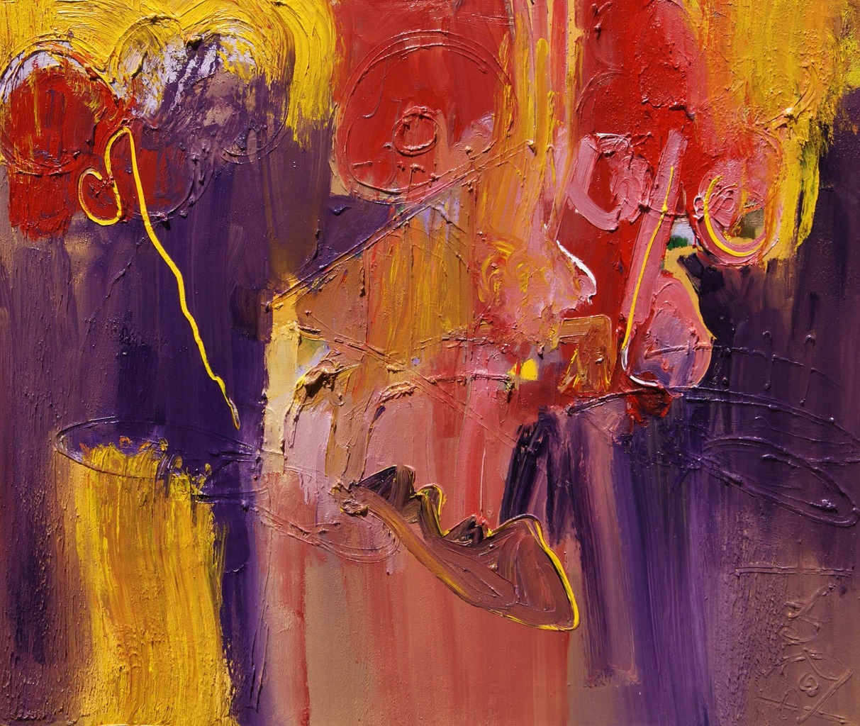 uit de serie "Ik was een lustobject", 2 gezichten zijn erin te herkennen. Met de kleuren rood, paars, geel en roze. Red Light