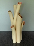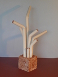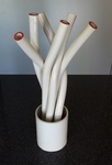 Relatie tussen cultuur en natuur. In mijn werk als beeldend kunstenaar onderzoek ik de relatie tussen natuur en cultuur. Onze gecultiveerde wereld symboliseer ik met kubus en rechthoek vormen. Deze zet ik in contrast met het grillige en chaotische van de natuur. Is er een winnaar? Waar zit de strijd? Waar ontstaat er harmonie? met klei verbeeld ik dit in 3-d objecten. Ook combineer ik klei vaak met andere materialen zoals hout en ijzer. Hanneke Windhausen