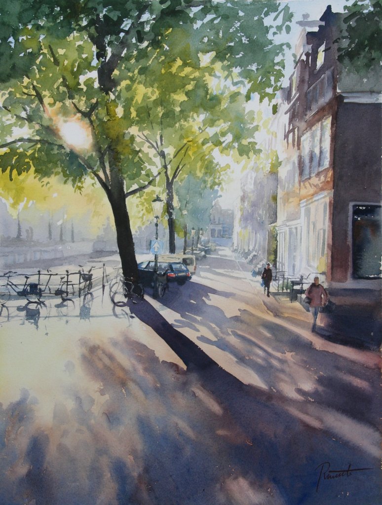 scherp ochtendlicht in Mei ,op weg naar de Noordermarkt