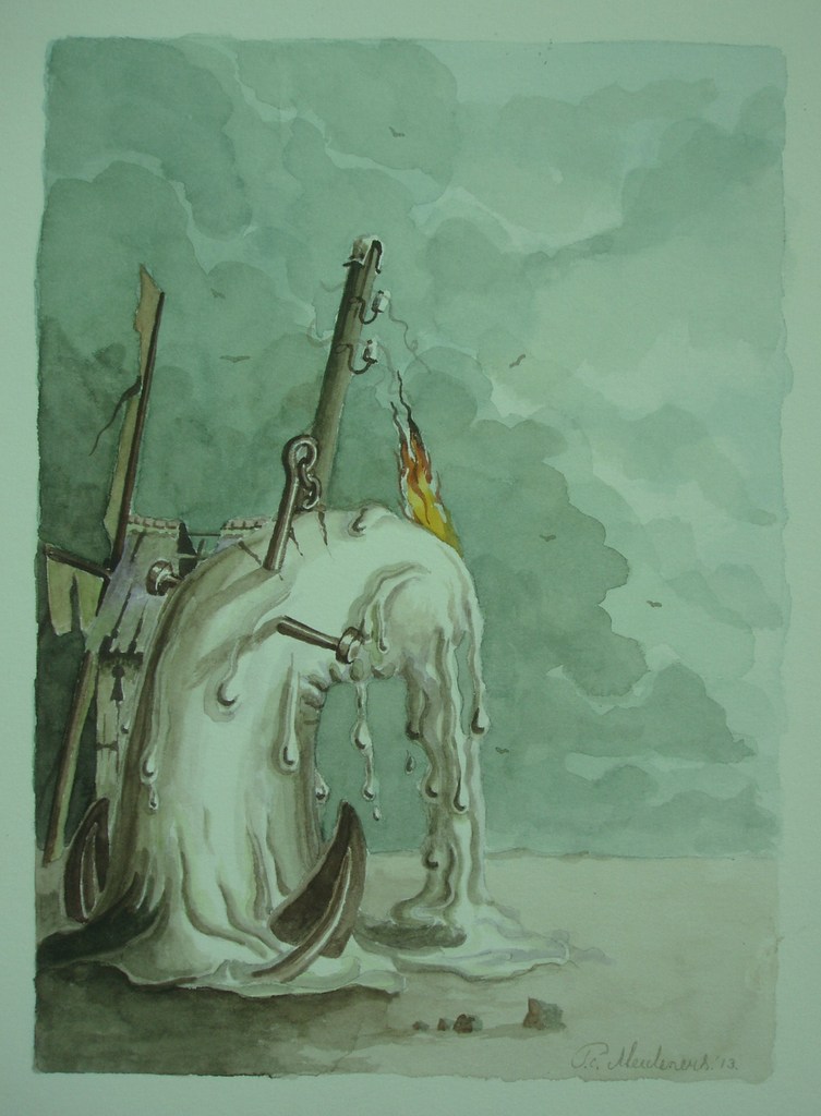 Molen Kaars Anker Hoop Strijd Realisme Fantasie Romantiek Papier Aquarel