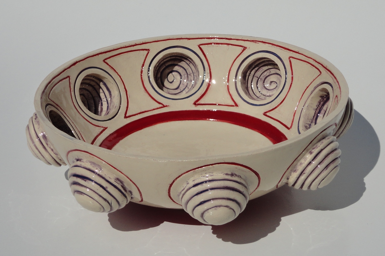 schaal met bolvormige uitstulpingen kleur rood/paars
