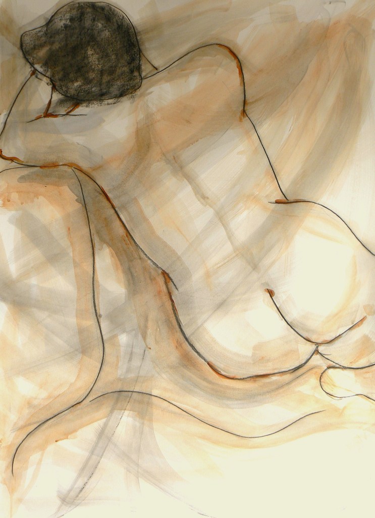 Vrouw Naakt Papier Krijt Woman Nude Tekening Acrylverf Acrylic Vrouwelijk Paper Backside Chalk