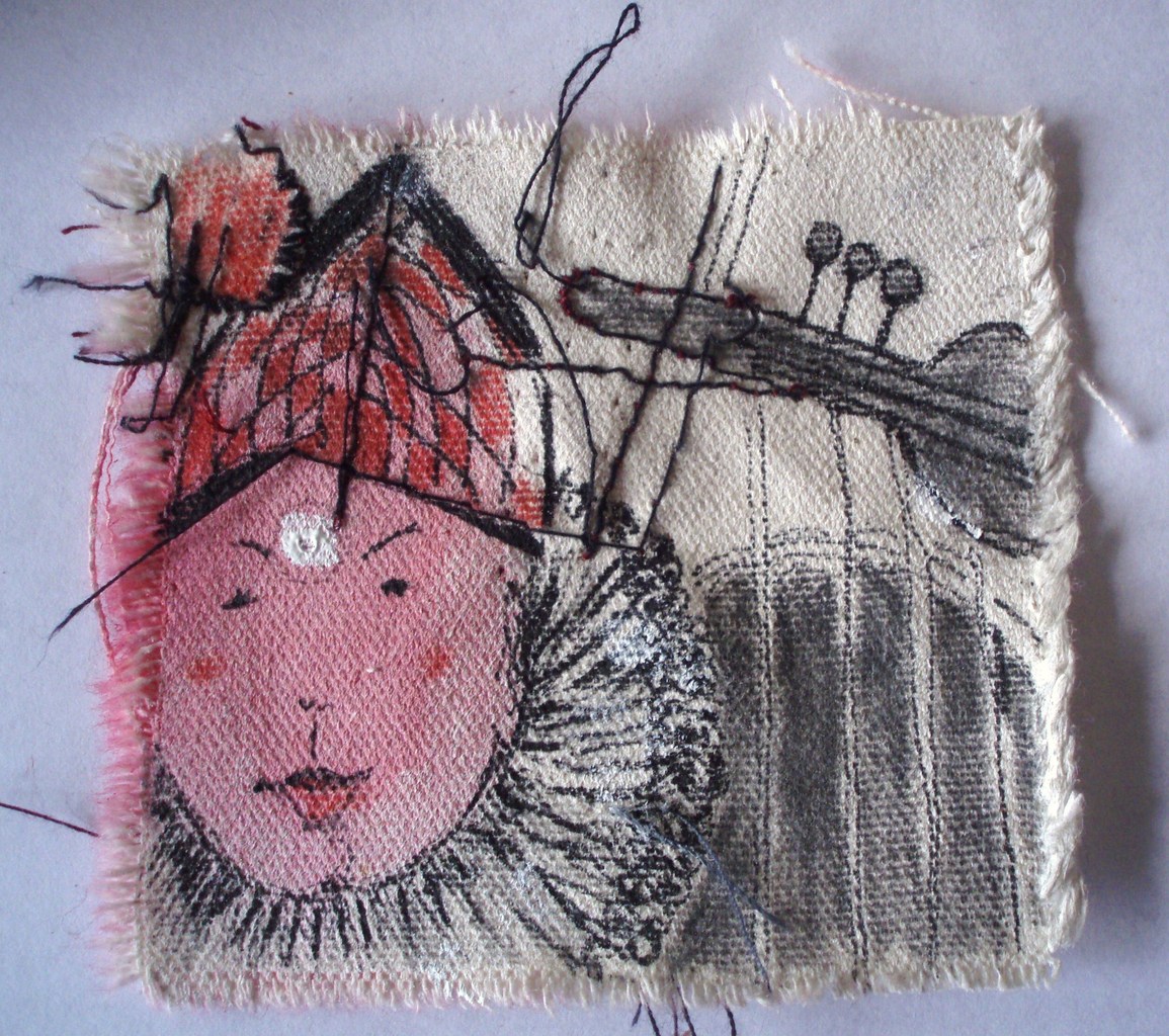 Mini, deel van een serie, geschikt voor in een Tomy Gacha Artomat. Kan opgenaaid worden op tas of jas of als zelfstandig kunstwerk functioneren.