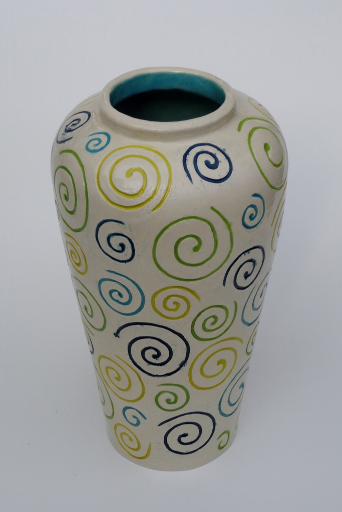 vaas met spiraalmotieven kleur geel/groen/blauw