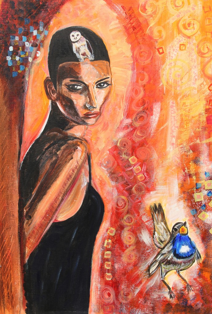 vrouwenfiguur met vogel