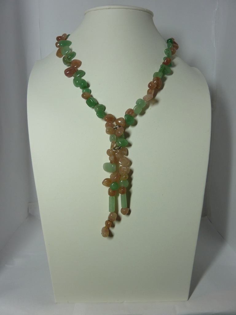 Stropdas ketting met kralen van rozenkwarts en aventurijn ((0,5-2cm) ) op gecoat staaldraad. Lengte: 72 cm Incl. organza cadeauzakje en verzendkosten