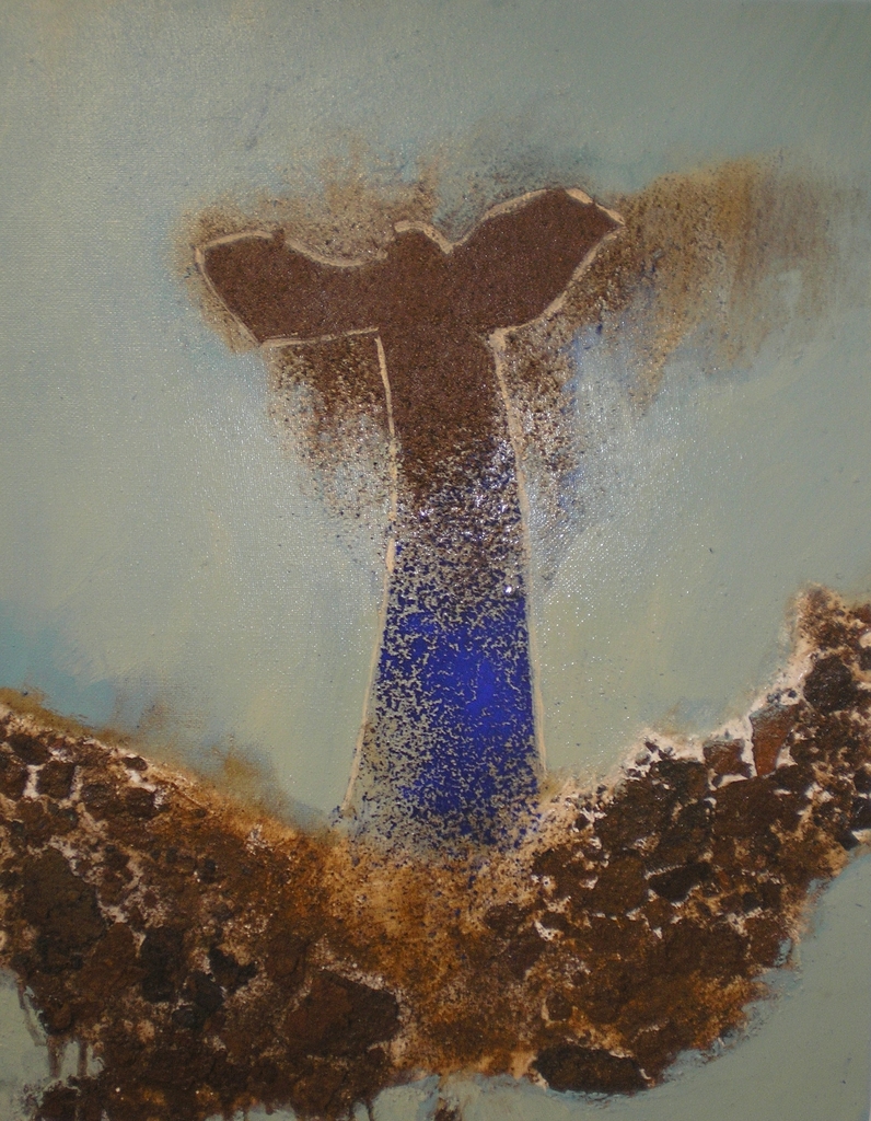 een combinatie van roest acryl en lapis lazuli