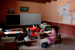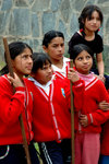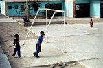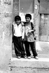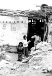 meisjes voor hun 'huis' in de sloppenwijk villa el salvador (Lima/Peru)