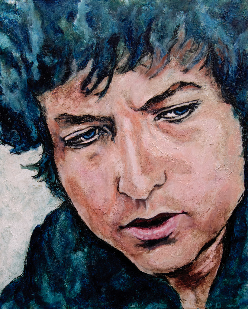 Schilderij Oranje Blauw Acryl Portret Blue Mixed Media Portrait Painting Orange Dylan Bob Acrylics Bister