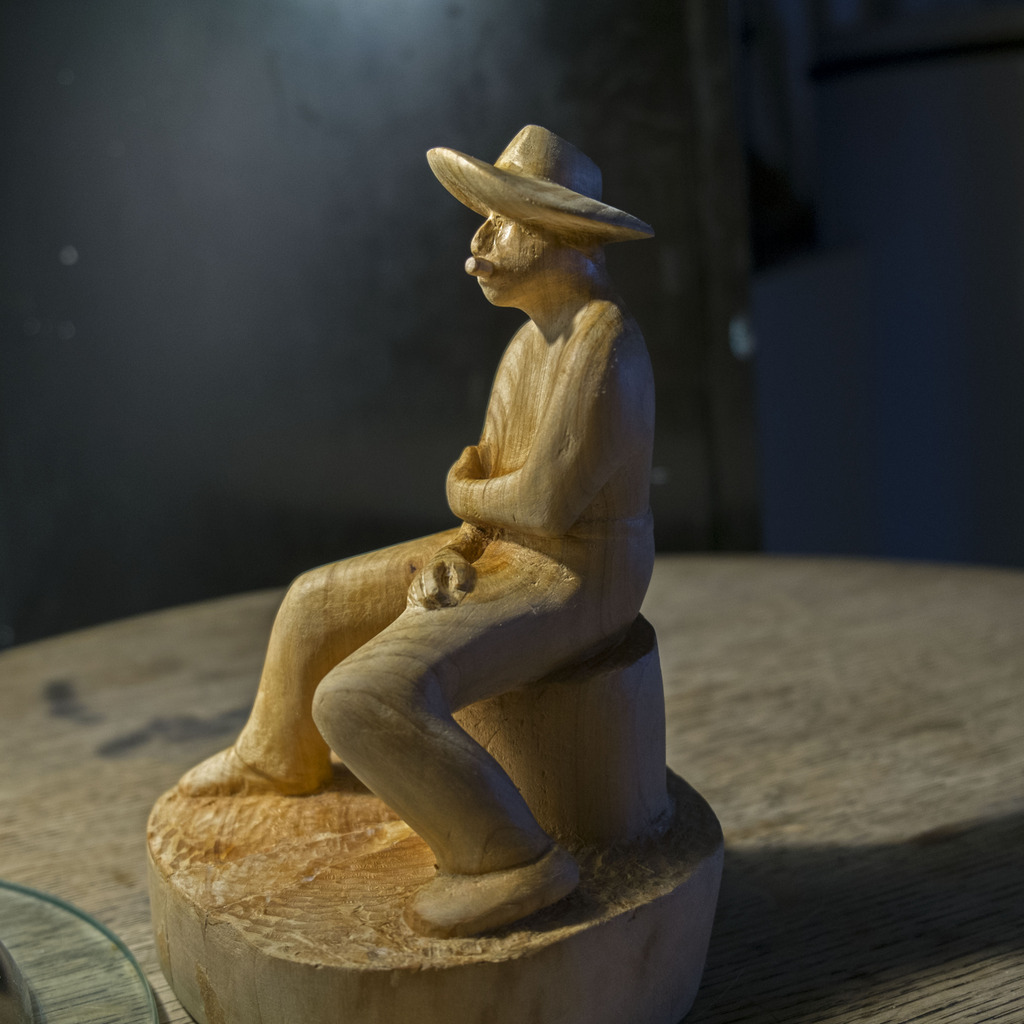 Man Hoed Buiten Zomer Boomstronk Bejaard Sigaar Gepensioneerd 65+
