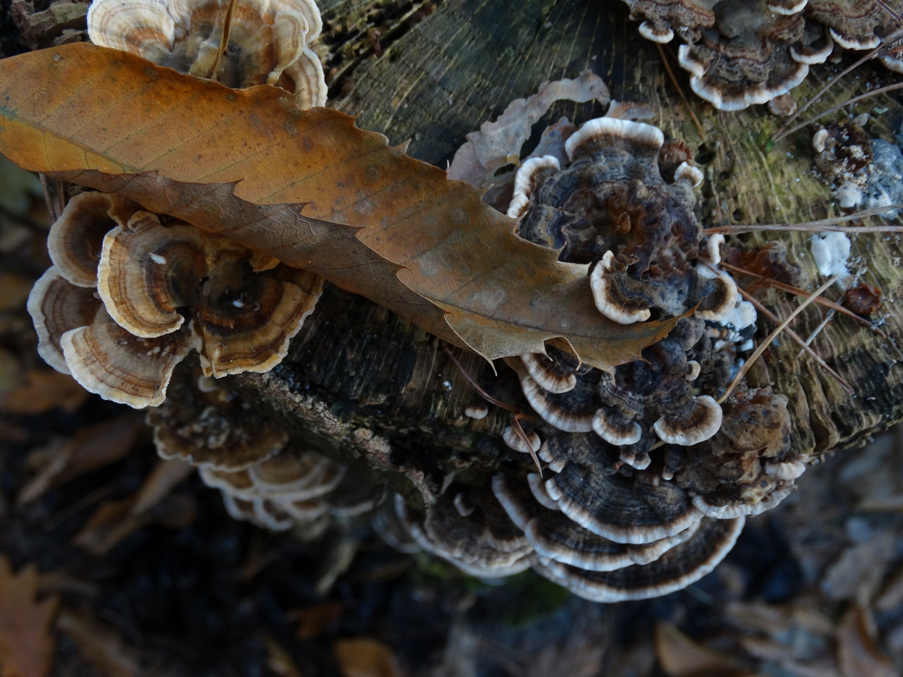 Het elfenbankje is een kleine consolevormende paddestoel die op dood hout groeit.