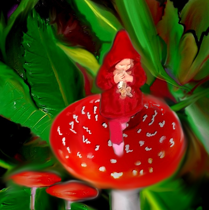 klein meisje op een paddestoel