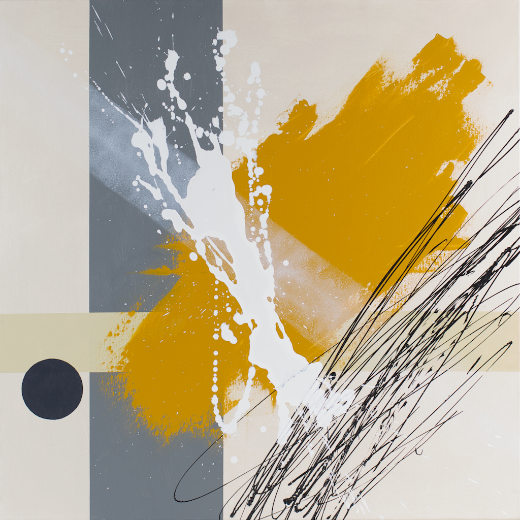 Schilderij Abstract Grijs Geel Acryl Oker Expressief Lyrisch