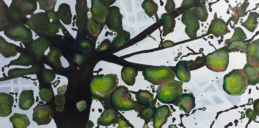 Schilderij Blauw Acryl Groen Fruit Bladeren Appel Lucht Blad Boom