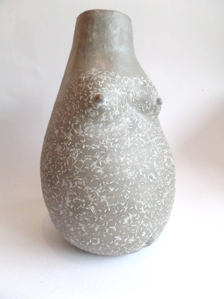 vaas met subtiele vrouw vorm witte engobe decoratie