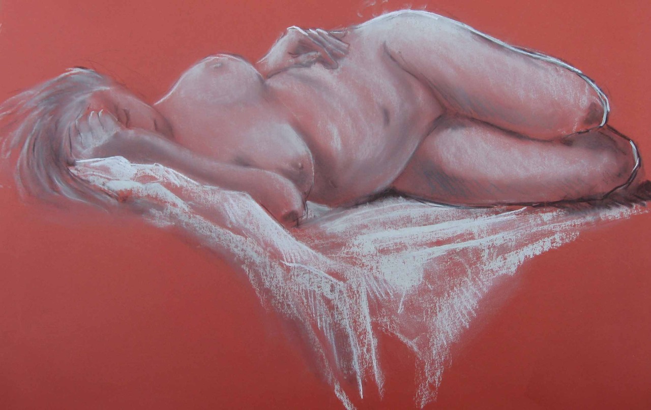 houtskool, pastel, krijt - getekend naar model