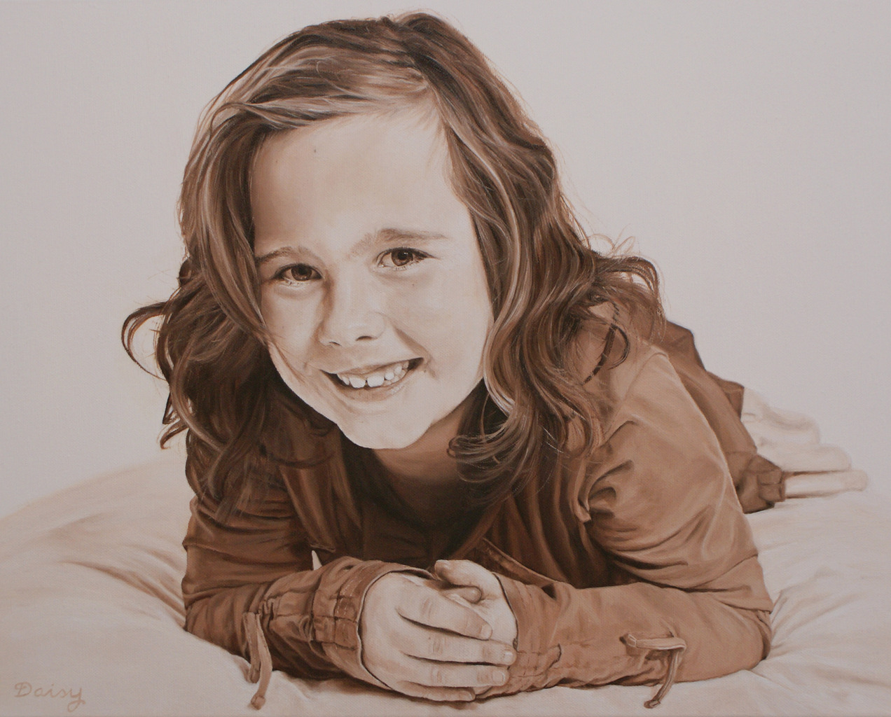 ‘Schilderen is mijn passie’. Daisy schildert voornamelijk portretten met olieverf. Ook maakt ze in opdracht portretten met potlood of pastel. Bij een olieverf schilderij maakt ze na de schets met verdund acryl een onderschildering. Daarna schildert Daisy laag over laag totdat het schilderij af is. ‘Op het moment dat een opdrachtgever mij benadert voor het schilderen van een portret, is dat een bewuste keuze. Het hele proces vind ik boeiend. Niet alleen het schilderen zelf maar ook het contact met de opdrachtgever. Vaak krijg ik hele emotionele verhalen te horen. Ik kan iets voor iemand betekenen en mensen raken met mijn werk’. Naast het schilderen in opdracht geeft Daisy ook cursussen schilderen aan volwassenen en tieners in haar atelier aan huis (Atelier Daisy). www.daisyvanmontf
