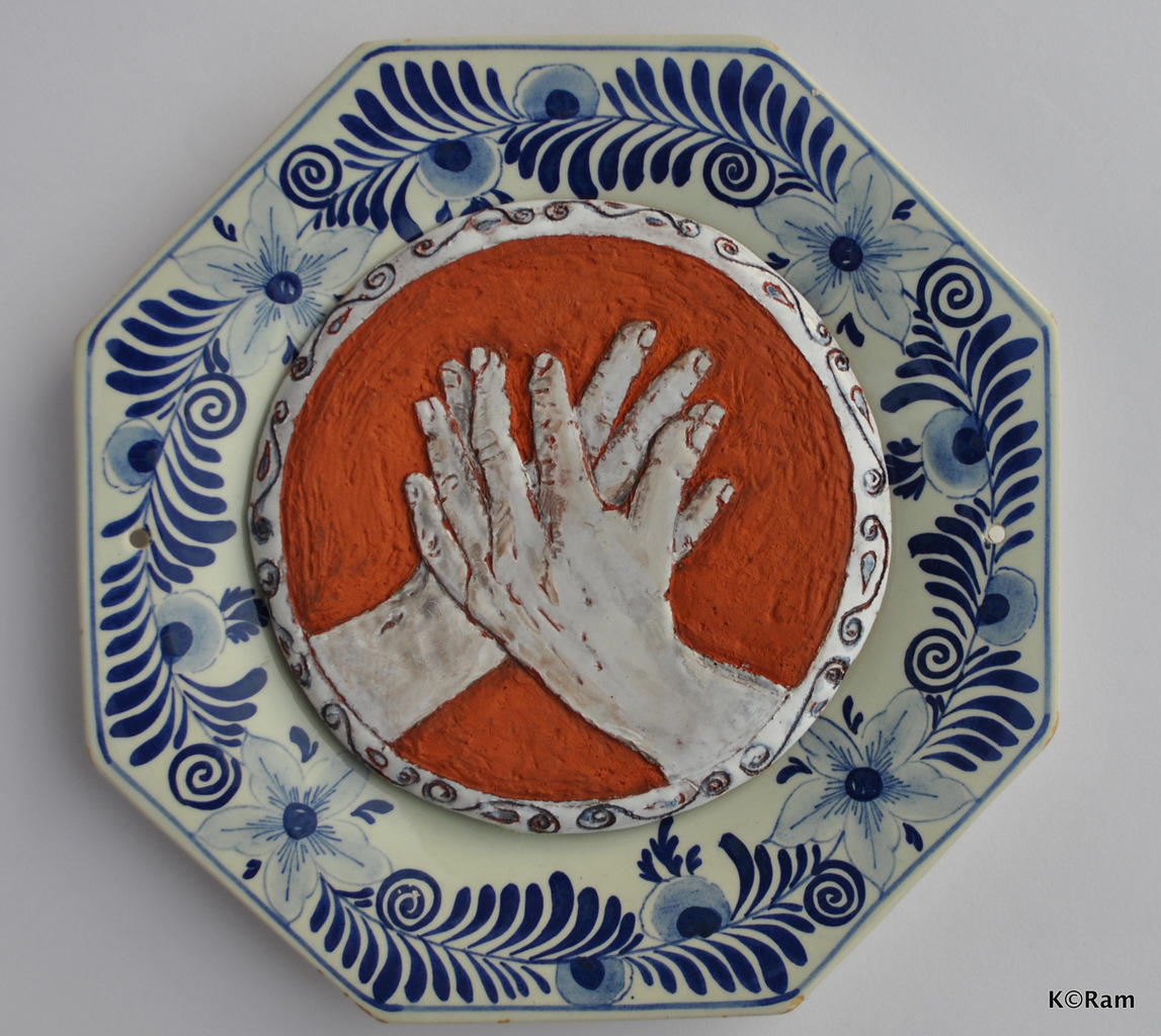 Wat mij ook inspireert is het bord zelf, de eenvoud ervan en de kunst van de plateelschilders die deze borden eeuwenlang van decoraties hebben voorzien. Uit respect hiervoor heb ik mijn bordjes voor een deel in tact gehouden en daar mijn keramische beeld aan toegevoegd. De techniek die ik hierbij heb toegepast is sgrafitto; krassen en tekenen in glazuur met roodbakkende klei als basis.