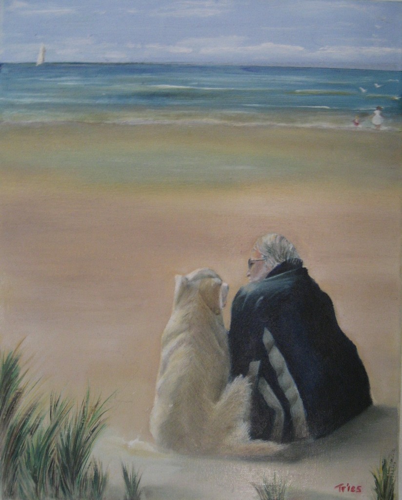Ik ben Tries van der Meulen-Provily. Ik ben geboren in 1958. Ik ben begonnen met aquarelleren maar al snel merkte ik dat ik toch beter kon werken met olieverf. Vanaf 2007 ben ik begonnen met schilderen met olieverf op linnen. Ik ben een fijnschilder en schilder veel portretten van mens of dier. Dat zijn bijna allemaal opdrachten. Ook schilder ik af en toe vrij omdat ik soms exposeer en daar eventueel wat kan verkopen. Of ik schilder vrij, voor mijzelf. Ik vind het heel belangrijk dat de opdrachten heel goed lijken. Als het ware moet de ziel erin zitten. Daarin ligt mijn lat heel hoog. Als mijn opdrachtgevers zeggen hij/zij of het is het helemaal, dan ben ik echt tevreden.