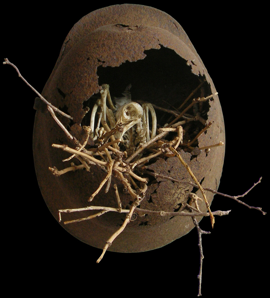 Helm, WOI, duivenskelet en duivennest.